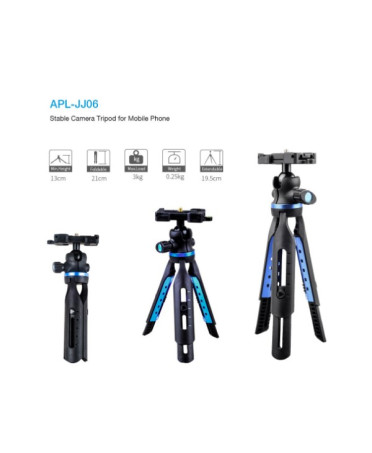 Caractéristique: ABS, Fiber de carbone Type: trépied de bureau extensible Portable Poids (g): 250 Caractéristique 1: trépied pour téléphone portable Caractéristique 2: trépied pour appareil photo Caractéristique 3: trépied pour GoPro Rétrécissement élevé: 21 cm Extension haute: 19.5mm Charge: 3 kg